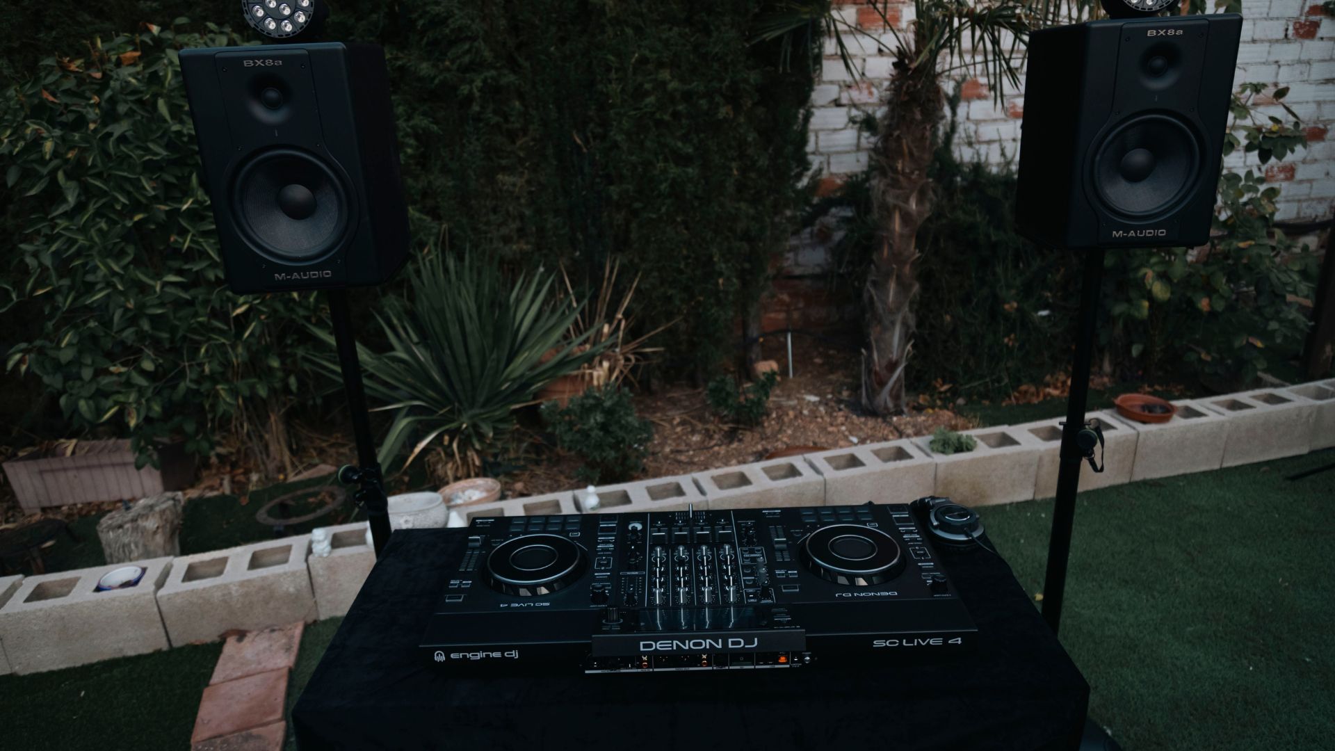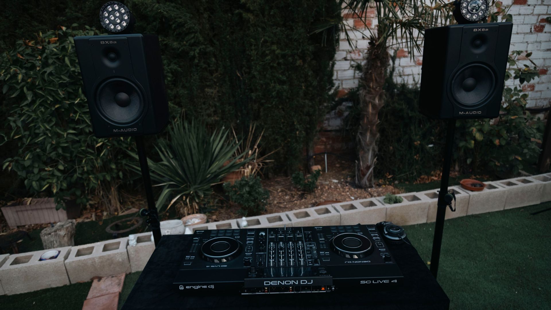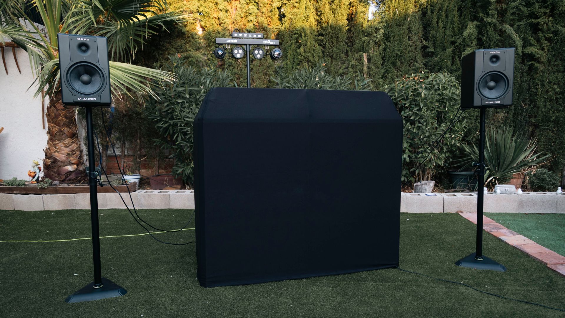 Igualmente, ofrecemos un servicio premium con montaje de cabina de DJ profesional, altavoces de alta potencia, iluminación avanzada y extras como máquina de humo.